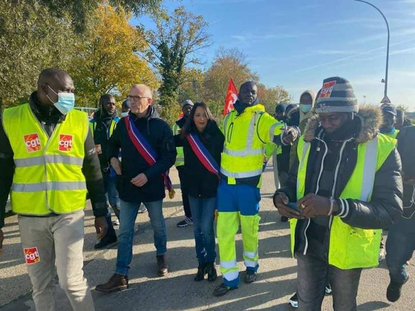 Le 9 novembre 2021, Nadia Mouaddine et Denis Datcharry étaient présents aux côté des salariés en grève de l’entreprise Sepur à Villeneuve-la-Garenne.