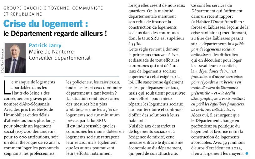 Alors oui, il est urgent que le Département change en profondeur sa politique du logement et favorise enfin la construction de logements abordables. Avec 393 millions d’euros d’excédent en 2022, il en a largement les moyens.