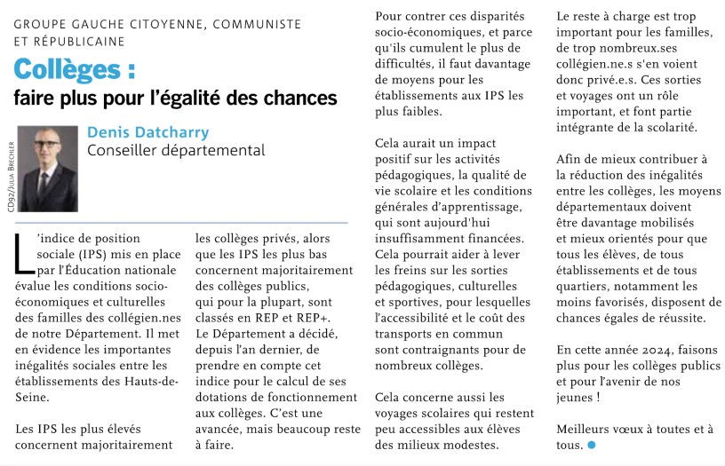 En cette année 2024, faisons plus pour les collèges publics et pour l’avenir de nos jeunes !