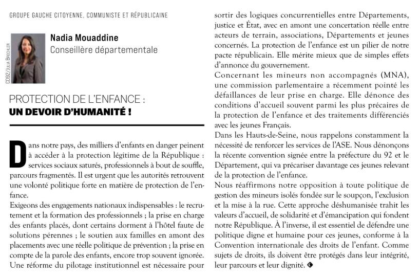 Dans les Hauts-de-Seine, nous rappelons constamment la nécessité de renforcer les services de l’ASE. Nous dénonçons la récente convention signée entre la préfecture du 92 et le Département, qui va précariser davantage ces jeunes relevant de la protection de l’enfance.