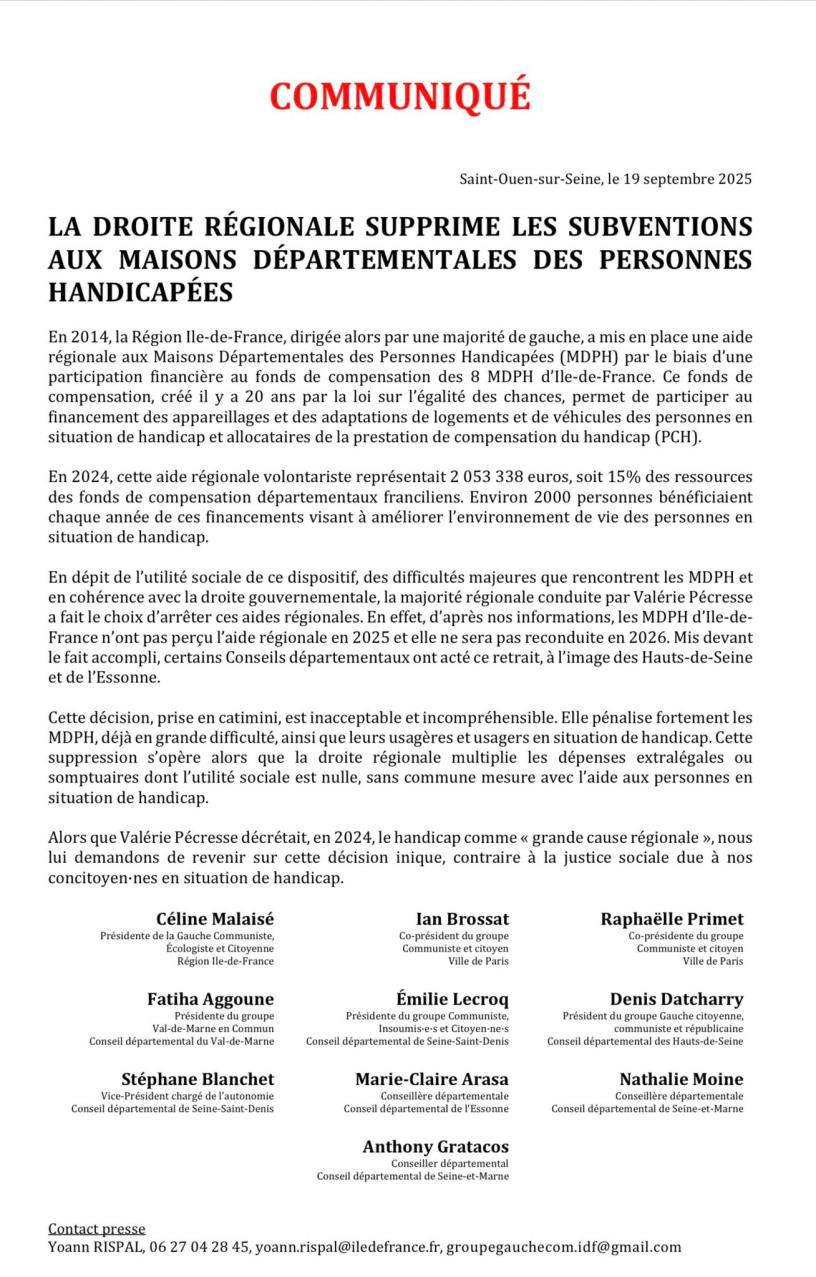 LA DROITE RÉGIONALE SUPPRIME LES SUBVENTIONS AUX MAISONS DÉPARTEMENTALES DES PERSONNES HANDICAPÉES