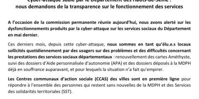 Communiqué du 22 septembre 2025 – « Cyber-attaque subie par le Département des Hauts-de-Seine : nous demandons de la transparence sur le fonctionnement des services »