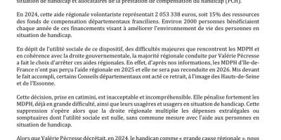 Communiqué commun -Avec les groupes communistes et apparentés des Départements et de la Région IDF : « La Droite régionale supprime les subventions aux MDPH »